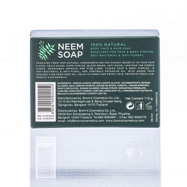 Soap. D. Branner NEEM SCRUB SOAP helps in eliminating dandruff, itch, reduces rashes from mask Allergy, reduces and protects from pimples, and clears body pimples due to allergy from sweat. Is Anti-Bacterial, helps to controls excessive oil, reduces itch from the body from insect bites, and heals cuts & wounds.